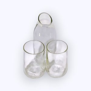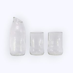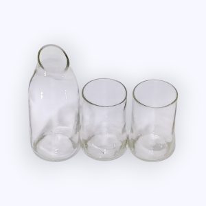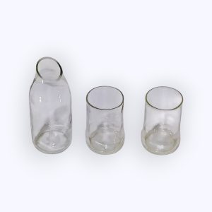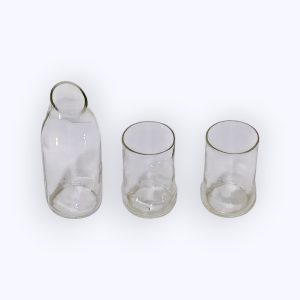 I bicchieri sono realizzati con bottiglie e vasetti riciclati, raccolti e trasformati nel nostro laboratorio in prodotti ecologici e funzionali. Il processo di riciclo è eseguito da donne artigiane esperte che tagliano, levigano e lucidano il vetro a mano. Il risultato è un set funzionale e sostenibile, con una storia unica che riflette l’impegno dell’Egitto per l’artigianato e il rispetto per l’ambiente.