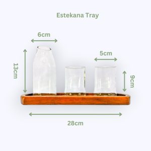 Porta il fascino della tradizione del tè egiziano nella tua casa con questo Set Tradizionale da Servizio, realizzato a mano con cura da artigiani locali egiziani. Questo set unico include un elegante vassoio in legno, due bicchieri Estekana e una brocca per latte, perfetto per un’autentica esperienza del tè.